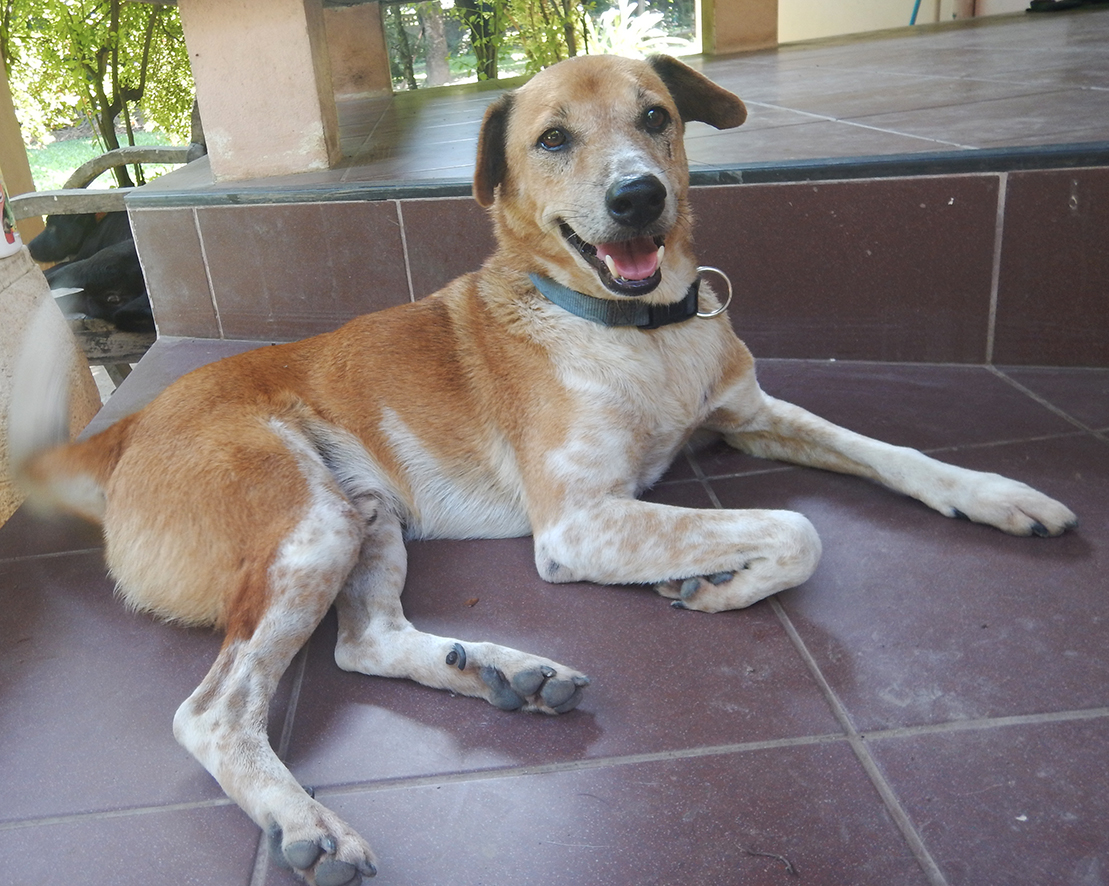 Boy, born December 2010, sterilized, dog Boy and his mother had been abandoned in the village. The mother got hit by a car and a woman asked us to help, so we took the two of them in. They are so nice. From time to time Boy goes out to play with other dogs, but most of the time he stays at his mother's side. An inseparable duo. Both of them like humans as well as other dogs. | ![]() Benchi, born 2014, sterilized, dog Benchi is a jolly, lovely fellow, who likes playing with bitches. At the moment he lives at the temple, but would be happy to find a new, good home. | ![]() Jimmi, born 2012, sterilized, dog Jimmi is a lovely guy who looks for a family for his own. Since he is very dominant he does not get along well with other male dogs. Bitches are not a problem though. A real toady with an extreme overbite. |