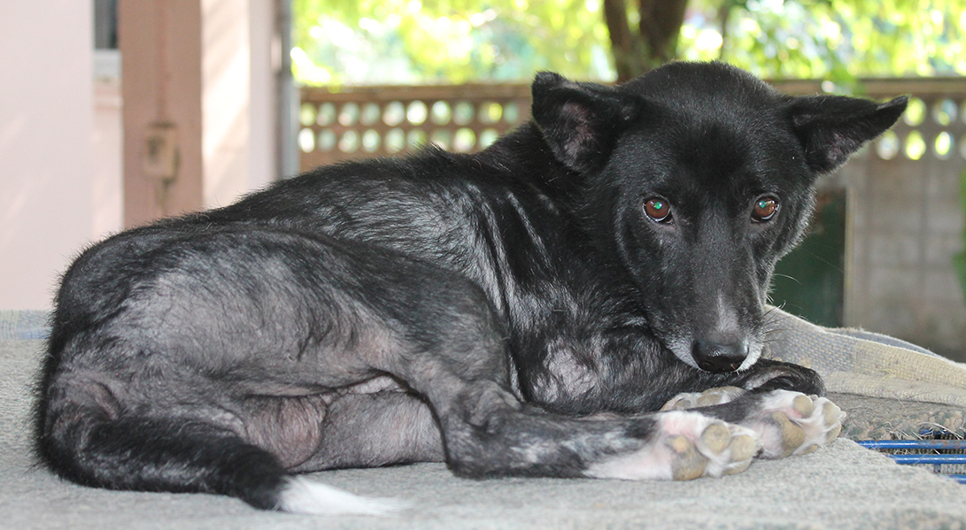 Pinky, bitch This lovely lady had been abandoned in our street while being pregnant. Unfortunately she hunted chickens, so we took her in for her not to be poisoned. She raised her 6 puppies tenderly and we could place all of them. Now Pinky is waiting for a new home. She is very kind and likes being taken for a walk. | ![]() Susu, born ca. 2007, sterilized, bitch A super friendly dog. Very kind. We have her in the shelter since may 2016. We found her with 6 puppies in a empty house outside town in nowwhere. No food, no water in the dry season. So we took all to the shelter. The puppies found a home already. | Dao, born 1-2013, sterilized, bitch She has cronical skin problmes in the rainy season. Her character is friendly. She like people and other dogs. One problem, she like to hunting chickens. We found her very sick in the forest temple in Chiang Dao. |