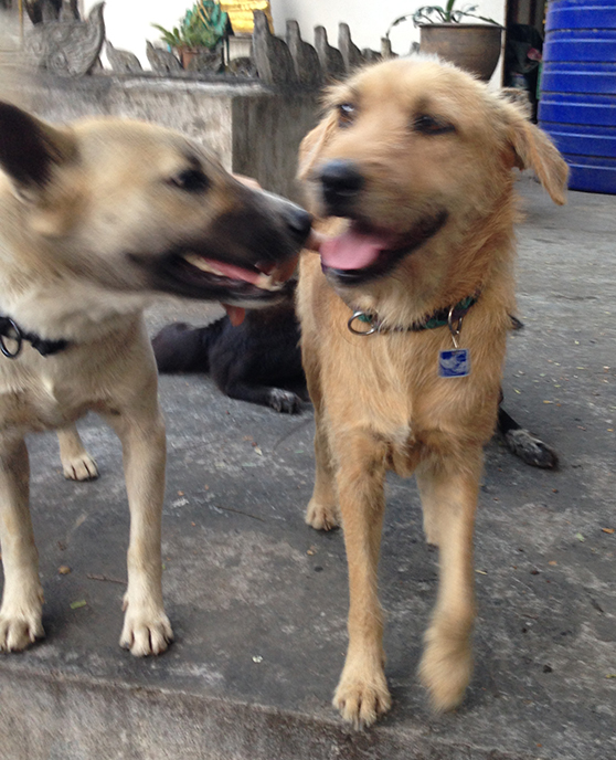 Greta, Geboren November 2005 , kastriert, Hündin Auch Greta kommt aus einem Tempel. Als Welpen hatte ich sie dort gefunden, alle Geschwister waren gestorben und keine Mutter war da. Die Welpen wurden wohl ausgesetzt. Wir peppelten Greta auf. Sie ist eine scheue Hündin, eine Einzelgängerin die Kontakt zu Menschen sucht. Andere Hunde sind ihr nicht wichtig. Sie hat einen starken Jagdinstinkt, sie jagt gerne Hühner. Sie wartet auf ein gutes Zuhause. | ![]() Tiem - Bangkeow - Geboren 2007, kastriert, Rüde Ein ruhiger Herr, der am liebsten im Haus liegt und sich streicheln lässt. Spazieren geht er auch gerne und kann das auch ganz gut an der Leine. Mit den meisten Hunden verträgt sich Tiem. Der alte Besitzer von Tiem ist gestorben, so sollte Tiem zum Hundemetzger. Ein Nachbar informierte uns darüber und wir lösten Tiem aus. Wie kann man so einen lieben schönen Hund nicht wollen. Das kann man nicht verstehen. Tiem ist inzwischen ein gemütlicher alter Herr, dem man nicht mehr in ein neues Umfeld bringen kann. | ![]() Susu, geboren 2007, sterilisiert, Hündin Susu ist eine sehr freundliche und liebe Hündin. Wir fanden sie 2016 mit ihren 6 Welpen in einem verlassenen Gebäude nahe Chiang Mai und seither lebt sie in unserem Tierheim. Ihre Welpen haben wurden bereits alle adoptiert, nun wartet noch Susu auf ein neues Zuhause. |
