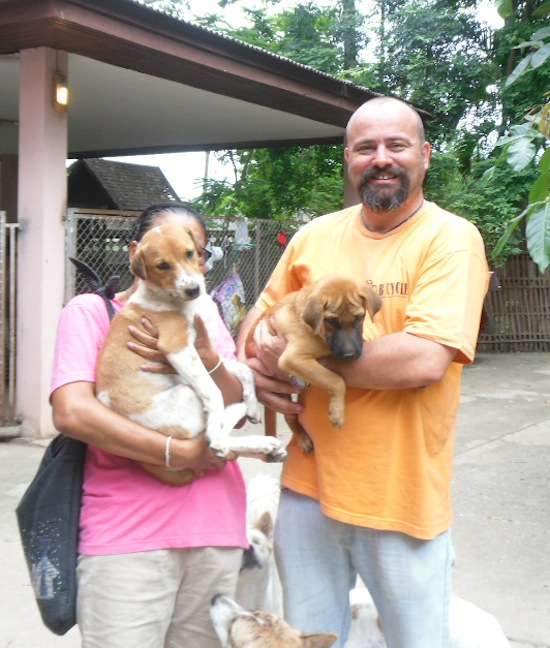 ![]() Fanta Einer der Welpen hat ein gutes Zuhause gefunden, ein junges Thai Paar, welches 4 weitere Hunde hat, adoptierte die süße Fanta. | ![]() Pepsi und I-Phone Ganz großes Glück haben diese beiden Welpen. Sie wurden von einer Holland - Thai-Familie adoptiert. Die Familie hat ein Ressort im Grünen ganz bei uns in der Nähe. Den Beiden Hunden geht es dort wunderbar und wir besuchen sie immer mal. | ![]() Jonny Lek Jonny wurde von einer Schweizer Familie adoptiert und sofort mitgenommen. Gut dass alle Pepiere schon gemacht waren. |